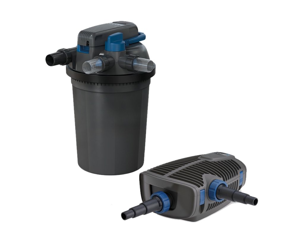 A FiltoClear 13000 tlakový filter v sade s energeticky úsporným AquaMax Eco Premium 9000 zariadením - dokonalá kombinácia filtra a čerpadla pre jazerá a potoky s objemom až do 5000 literov. Keďže všetky ovládacie prvky filtra vyrobeného z vysokokvalitného plastu sa nachádzajú v kryte, filter možno zapustiť do zeme a optimálne začleniť do krajiny okolo jazera. Dokonalý výsledok čistej vody: FiltoClear 13000 čistí mimoriadne účinne vďaka jemnej štruktúre filtračných hubiek a výkonnému 18 wattovému UV-C osvetleniu. Vďaka veľkému prietoku založenému na technológii OASE bypass sú upchávky filtra minulosťou. Vďaka ľahko ovládateľnému ťahaciemu mechanizmu je čistenie filtra pohodlné. Dokonca aj UV-C lampa sa dá rýchlo a jednoducho vymeniť počas prevádzky.