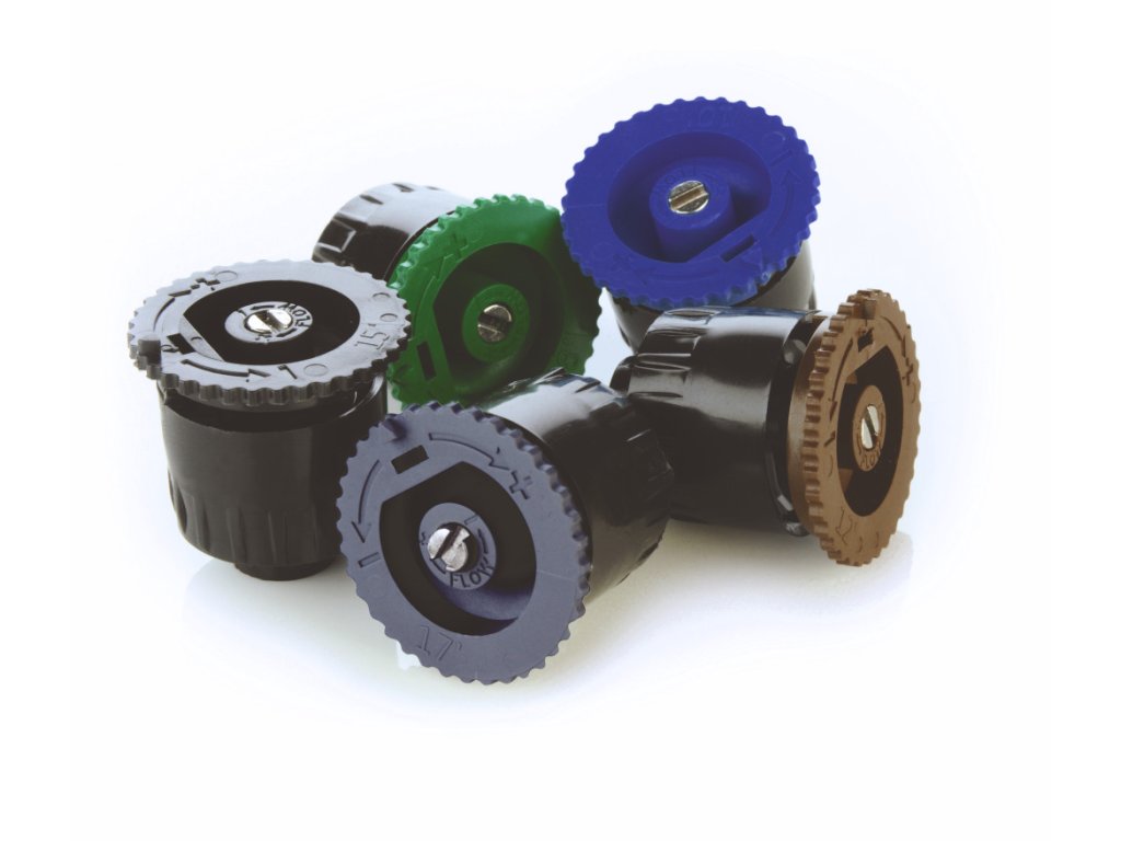Nastaviteľné trysky KVF (s vnútorným závitom) umožňujú rovnomerné rozstrekovanie vody aj pri členitom rozdelení záhrady.