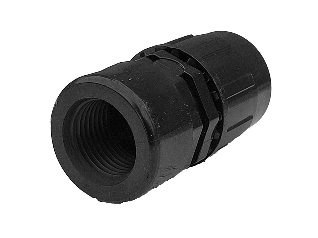 - Na jednom konci s puzdrovým prevedením prispôsobeným na LPE hadicu priemeru 20 mm, na druhom konci priama tvarovka s vnútorným závitom 1/2"