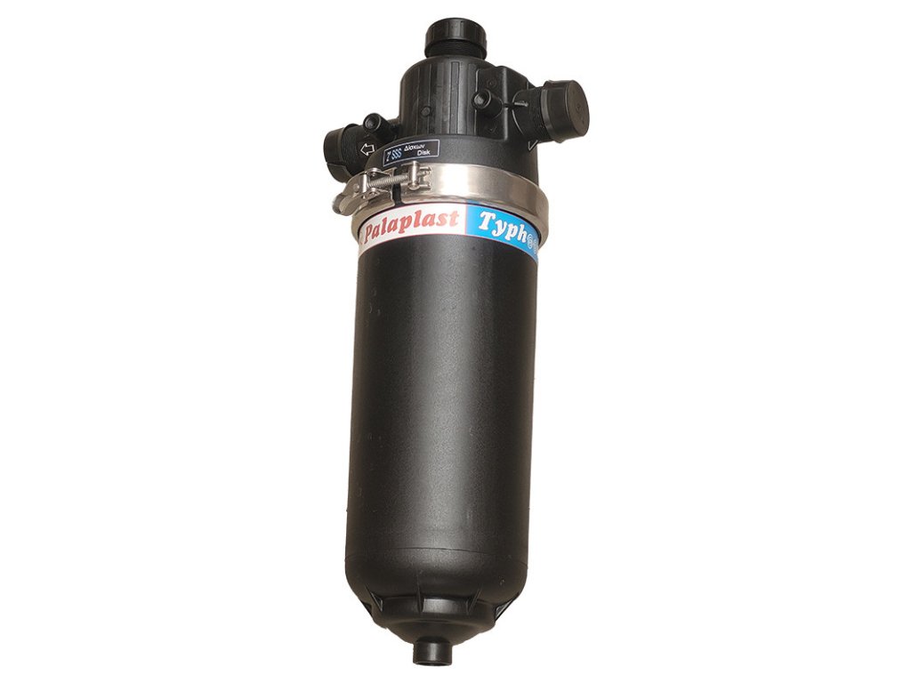 PP 2"-ový Super lamelový 90°-ový hydrocyklónový filter 35m3/h 3396 Typhoon žltý 155 Mesh-ový s filtrovou vložkou