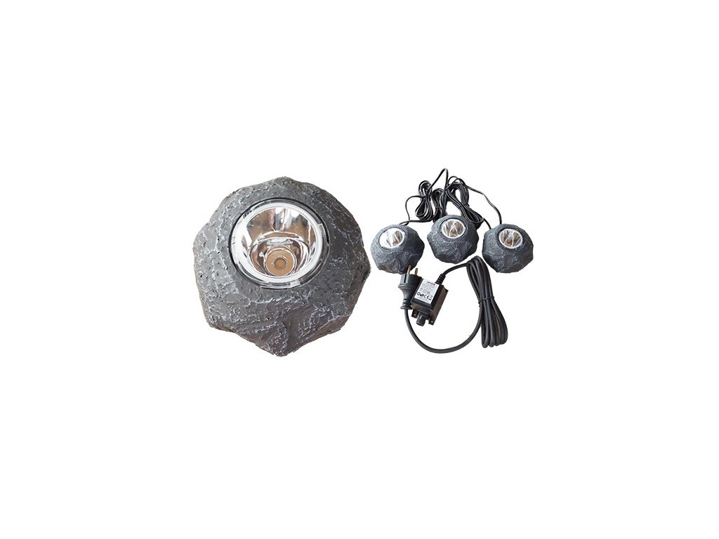 Sada obsahuje tri skalné lampy, jeden transformátor a kábel dlhý 2 m + 3 m + 2 m + 2 m + 2 m