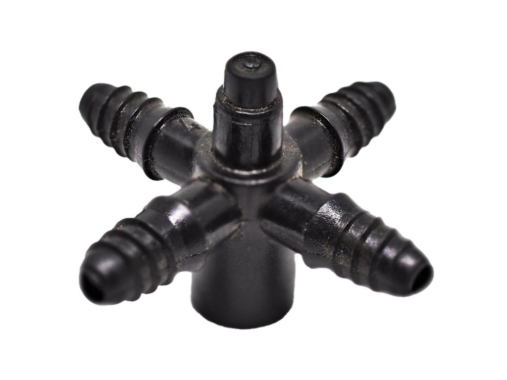 Rivulis 4-cestná rozbočka so skrutkovým upevnením na R kolík a na 4mm pripojenie