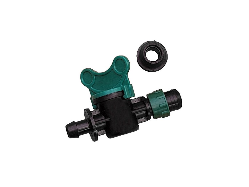Tape kvapkovacia páska štartovací kohútik 17mm so zeleným upínacím krúžkom a gumeným krúžkom pre 6-15miles pásku
