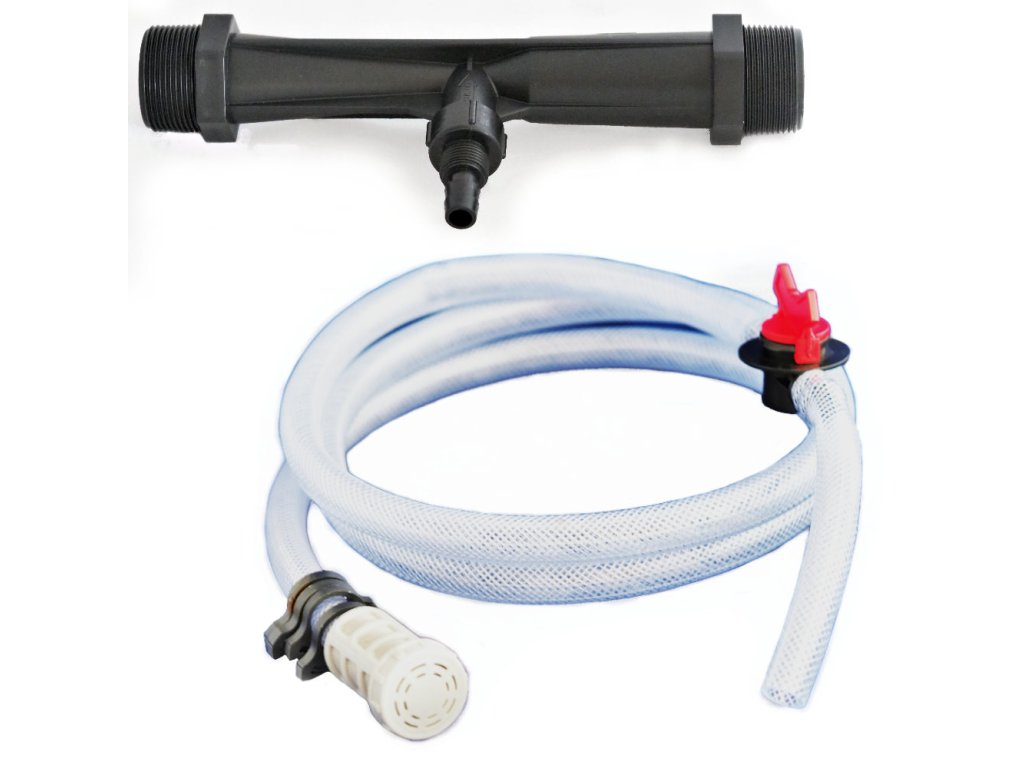 Venturi nasávač hnojivého roztoku 1" pre prietok 2-5m3/h, s filtrom, nastaviteľným ventilom a hadicou