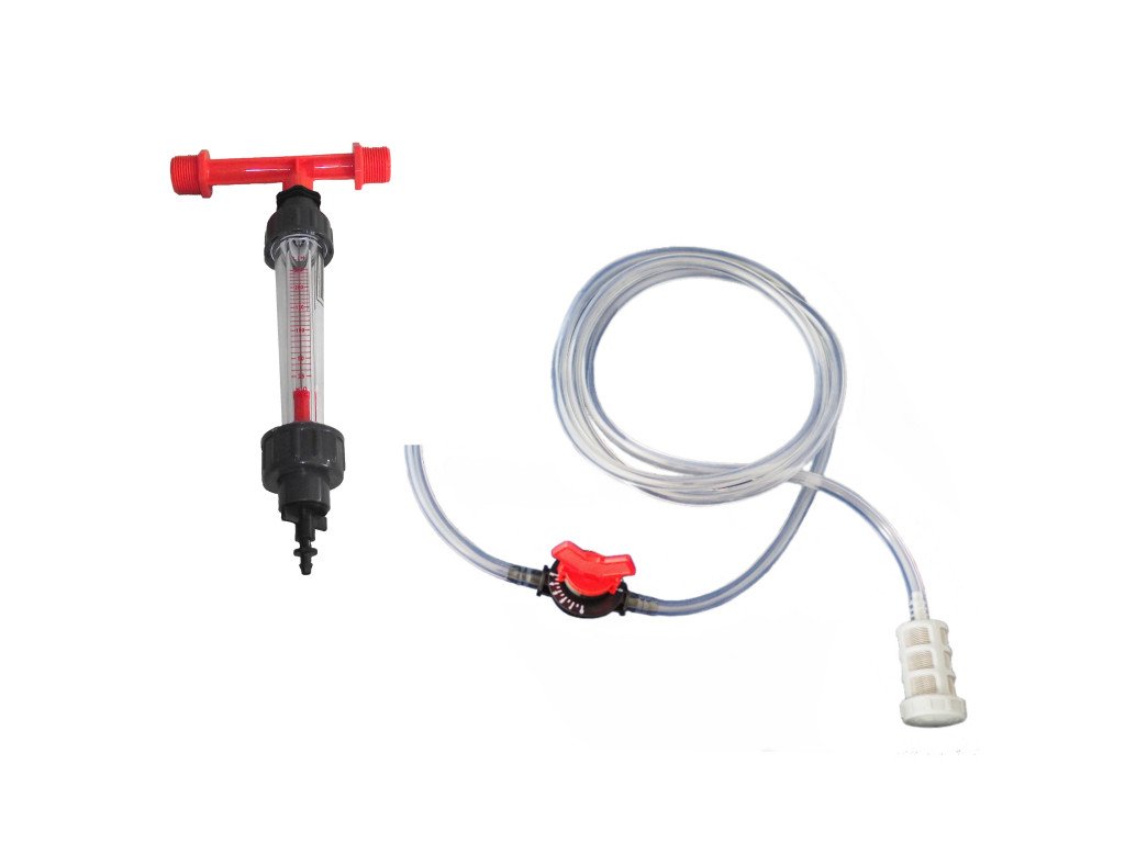 Venturi nasávač 3/4" s regulátorom, pre prietok 0,8-2,4m3/h vybavený filtrom, regulačným ventilom, hadicou a 25-250 l/h rotametrom.