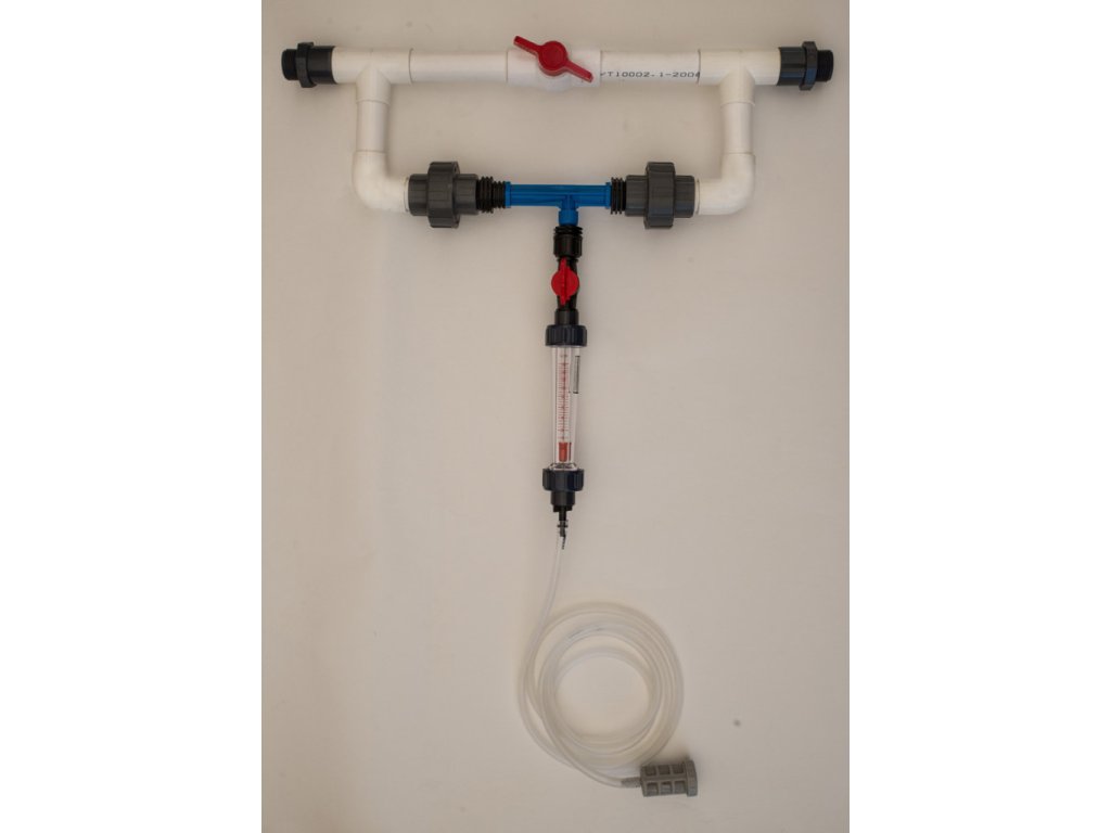 Venturi nasávač živného roztoku s obtokovou vetvou 1/2" 0,4-1,5m3/h, s nastaviteľnou prietokovou trubicou, s filtrom, komplet.