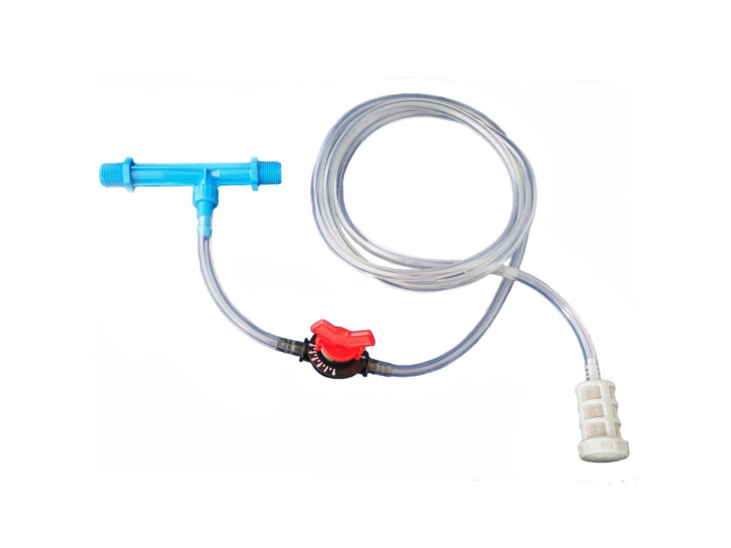 Venturi nasávač hnojivového roztoku 1/2" 0,4-0,8m3/h pre prietok so filtrom, s regulačným ventilom, s hadicou